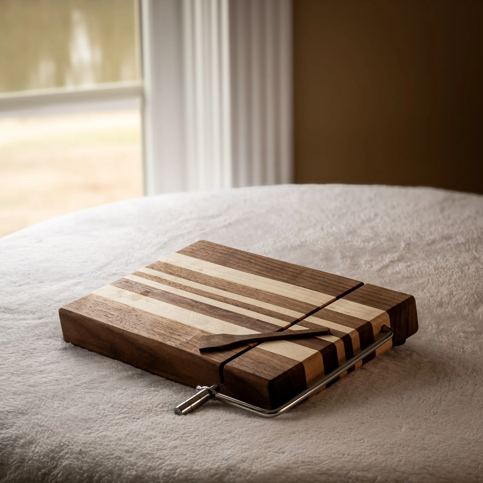 Shop › Cheese Slicer Image 1 of 2 Image 2 of 2 Cheese Slicer $55.00 A cheese slicer, made from Walnut and Maple wood. Quantity: Purchase Added! A cheese slicer, made from Walnut and Maple wood.